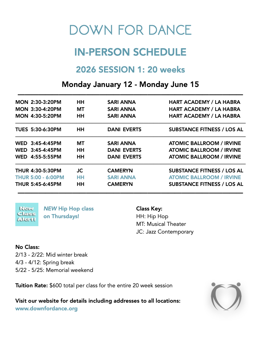 As we always do, we have constructed our master schedule in a way that allows local dancers to participate not only in our in-person classes - but in our online program as well! Make sure to check out our online schedule so that you can coordinate between the two!