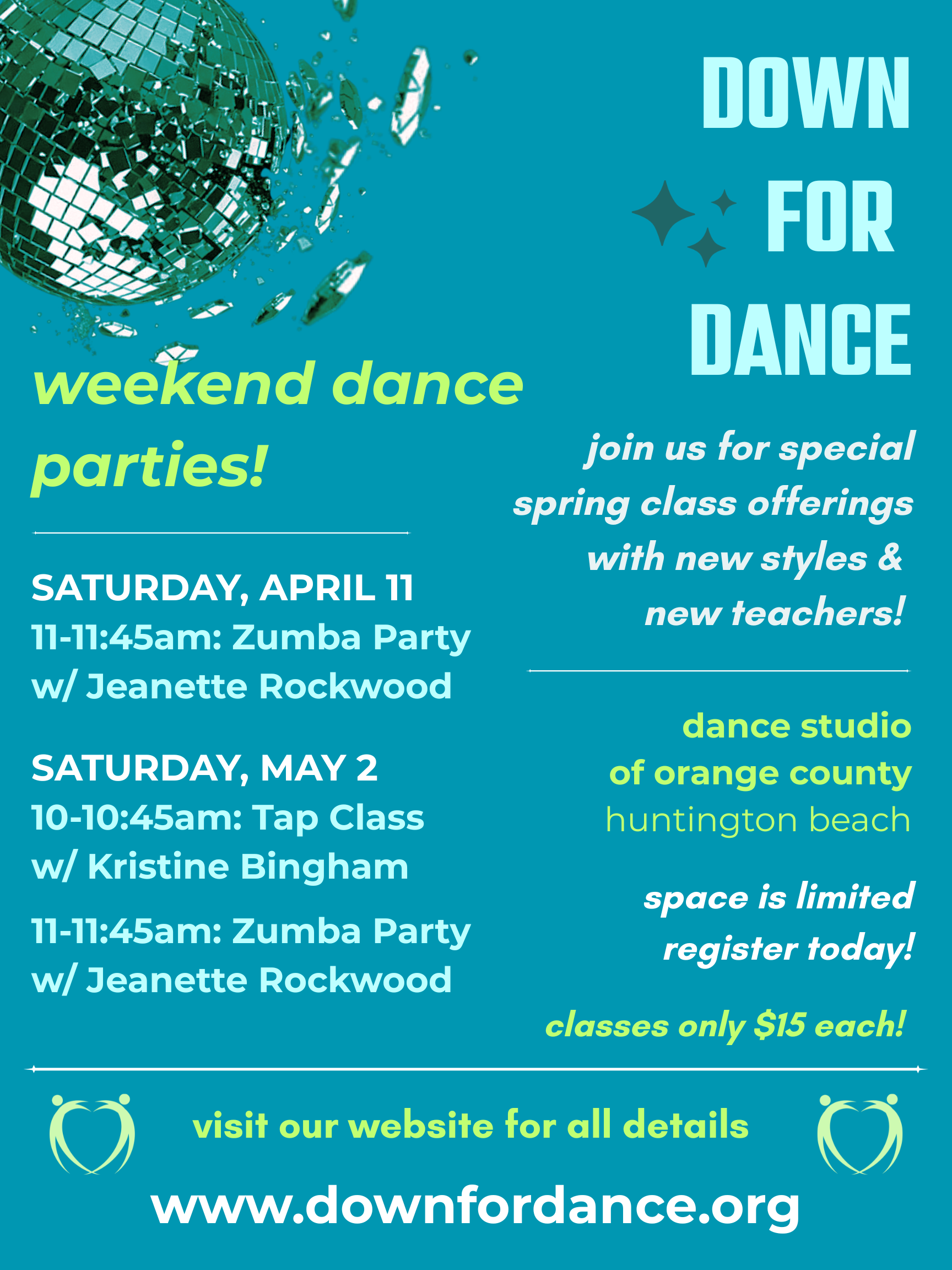 We are excited to offer extra dance classes over the next couple month. We hope you can join us as we party with . . .